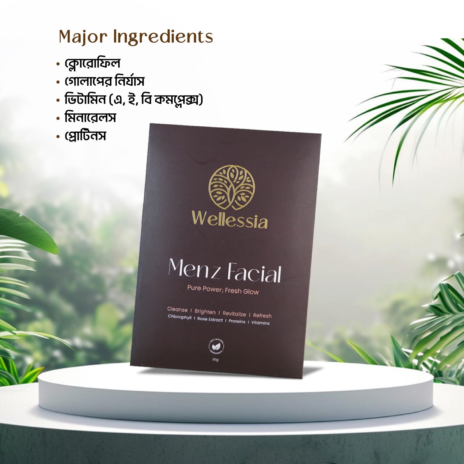 ক্লোরোফিল আর গোলাপের শক্তিতে ত্বক পান একসাথে ক্লিন, ব্রাইট ও ফ্রেশ লুক! পুরুষদের ত্বকের জন্য বিশেষভাবে তৈরি Wellessia Menz Facial – best skincare product for men, যা ত্বকে আনে ক্লিন, ব্রাইট ও ফ্রেশ লুক। আপনাকে রাখে সবসময় আত্মবিশ্বাসী ও সতেজ।